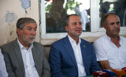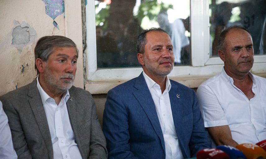 Yeniden Refah Partisi Genel Başkanı Fatih Erbakan (ortada), yangından etkilenen Bursa'nın Gürsu ilçesine bağlı kırsal Karahıdır Mahallesi'ne ziyarette bulundu. Erbakan, mahalledeki kahvehanede basın açıklaması yaptı.