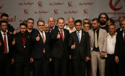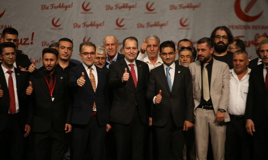 Yeniden Refah Partisi Genel Başkanı Fatih Erbakan (sağ3), Merkezefendi Kültür Merkezi'nde partisinin Denizli 2. Olağan Kongresi'ne katıldı.