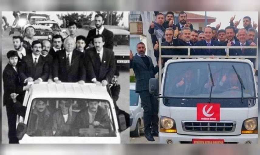 Canlandırılan pozda Ankara Pursaklar Seçim Koordinasyon Merkezi açılışının ardından kamyon kasasına binen Erbakan, YRP Genel Başkan Yardımcısı Mehmet Fatih Uğurlu ile poz verdi. “30 yıl sonra yeniden geliyoruz” diyen Mehmet Fatih Uğurlu, eski ve yeni fotoğrafı şöyle paylaştı: