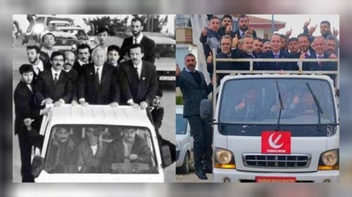Yeniden Refah Partisi (YRP) Genel Başkanı Yardımcısı Mehmet Fatih Uğurlu, yeni bir fotoğraf paylaşarak Recep Tayyip Erdoğan’a gönderme yaptı. YRP’nin Genel Başkanı Fatih Erbakan, babası Necmettin Erbakan’ın meşhur “kamyon kasasındaki pozunu” yeniden canlandırdı. Kendi ekibiyle birlikte 30 yıl önceki fotoğrafı canlandıran…