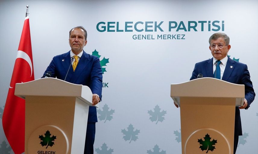 Yeniden Refah Partisi Genel Başkanı Fatih Erbakan,(solda) Gelecek Partisi Genel Başkanı Ahmet Davutoğlu'nu(sağda) ziyaret etti. Gelecek Partisi Genel Merkezinde basına kapalı gerçekleşen görüşmenin ardından, Erbakan ve Davutoğlu, basın mensuplarına açıklamada bulundu.