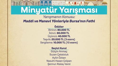 Yıldırım Belediyesi, 700. yıl etkinlikleri kapsamında 'Maddi ve Manevi Yönleriyle Bursa’nın Fethi' minyatür yarışmasına başvuruları 13 Mart'a kadar kabul ediyor.
