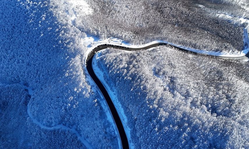 Bölgenin 1031 rakımlı Yıldız Dağları'nda kar yağışı, seyrine doyumsuz manzaralar oluşturarak, doğa severlerin ilgisini çekiyor. Yoğun kar nedeniyle yürüyüş yolları ve derelere sarkan ağaç dalları, virajlı yollar ve kuş sesleri ziyaretçilere ayrı bir keyif sunuyor. AA ekibi, Yıldız Dağları'nda oluşan bu göz alıcı manzarayı drone ile görüntüledi.