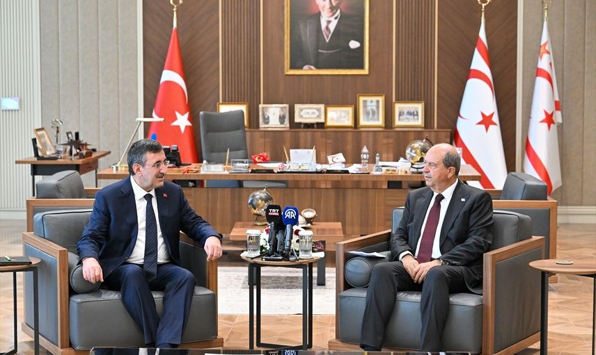 Cumhurbaşkanı Yardımcısı Cevdet Yılmaz, Kuzey Kıbrıs Türk Cumhuriyeti (KKTC) Cumhurbaşkanı Ersin Tatar tarafından Cumhurbaşkanlığı Yerleşkesi'nde kabul edildi. Ziyarette Yılmaz, Türkiye'nin KKTC'ye her alanda destek vermeye devam edeceğini ve siyasi istikrarın önemini vurguladı.