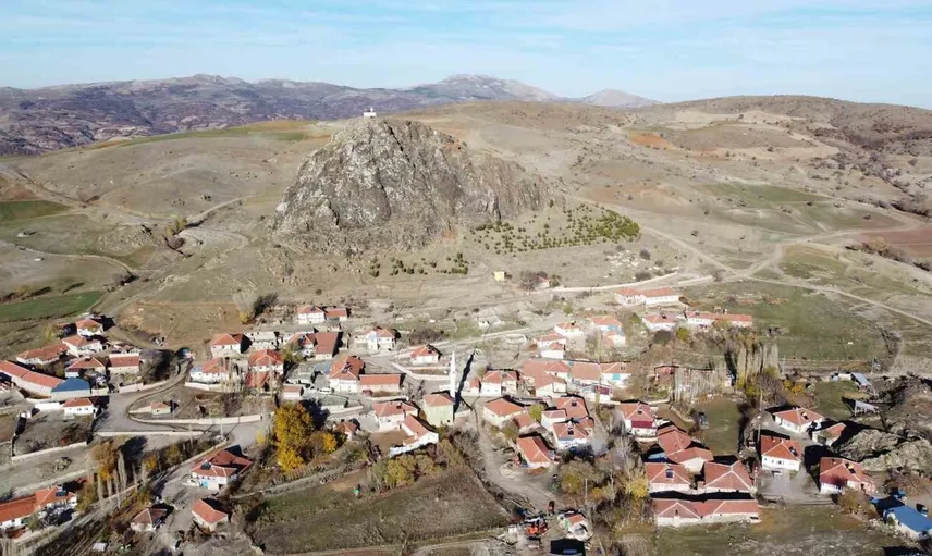 YOZGAT’IN KADIŞEHRİ İLÇESİNDE BULUNAN AKÇAKALE, KÖYE HAKİM NOKTADAN KUŞBAKIŞI MANZARA SUNUYOR.-