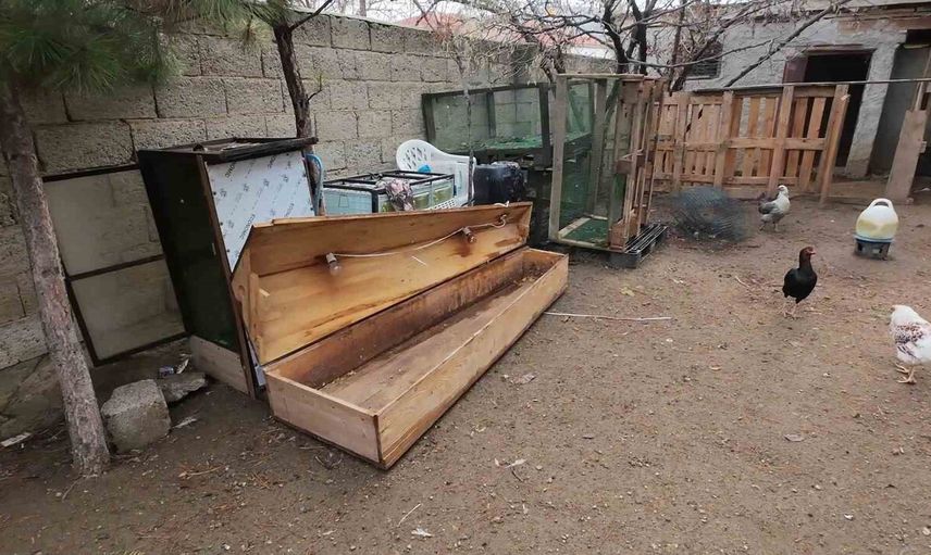 Yozgat'ta geri dönüşüm: Eski tabutlar civcivler için ana kucağına dönüştürüldü