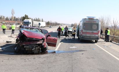 Yozgat'ta iki otomobilin çarpışması sonucu yaralanan 5 kişi hastaneye kaldırıldı.