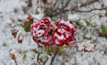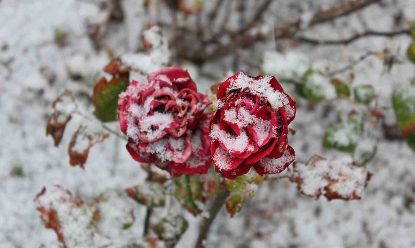 Yozgat'ta kar yağışı açan gülleri beyaz örtüyle kapladı