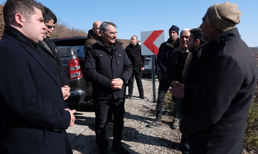 Yozgat'ta kendisinden haber alınamayan sınıf öğretmenini bulmak için arama çalışması başlatıldı. Olay yerine gelerek bilgi alan Yozgat Valisi Mehmet Ali Özkan (Ortada), gazetecilere, çalışmaların 150 kişilik ekiple devam ettiğini, iz takip köpek timleri ve dron destekli sürdüğünü belirtti.