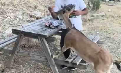 Yozgat'ın Aydıncık ilçesine bağlı Kazankaya köyünde yaşayan Coşkun Uzun, Kazankaya Kanyonu'nda doğada vakit geçirirken yanına gelen bir dağ keçisini elleriyle besledi. O anlar arkadaşının cep telefonu kamerasıyla kaydedildi.