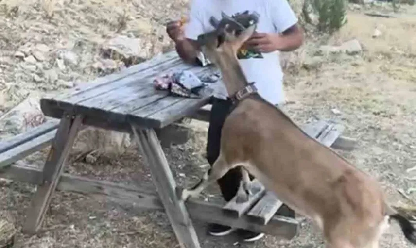 Uzun, kanyona arkadaşlarıyla oturmak için gittiklerini ve yanına atıştırmalıklar aldığını belirtti. Kendisine yaklaşan keçiye getirdiği yiyecekleri verdi; fındık ve cips verdiğini, keçiyi elinden beslediğini aktardı. Yavrusu daha ürkek olduğu için kaçarken, anne keçi zaman zaman üzerine tırmanma girişiminde bulundu.