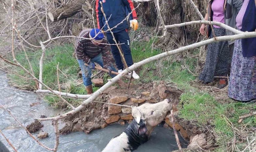 Sarıhacılı Mahallesi'nde bir vatandaşa ait büyükbaş hayvan, köy yakınlarındaki bir kuyuya düşerek mahsur kaldı.