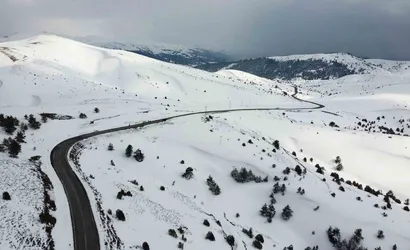Yozgat’ın Akdağmadeni ilçesinde yer alan Nalbant Geçidi, 2 bin 77 metre rakımıyla karla kaplı görüntüler sundu. Bölge, çam ağaçlarıyla çevrili alanları ve beyaz örtünün oluşturduğu görsel kompozisyonla dron kamerasına yansıdı.