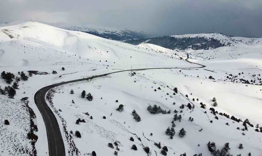 Yozgat'ta Nalbant Geçidi (2 bin 77 metre) karla kaplı görüntüsüyle dikkat çekti