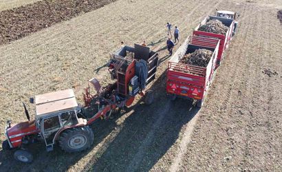 Yaklaşık 6 aylık emeğin ürünü olan pancarlar, sökülerek bölgedeki şeker fabrikalarına taşınıyor. Hasat döneminin başlamasıyla tarlalarda pancar sökümü sürüyor; toplanan ürünler römorklara yüklenip fabrikalara ulaştırılmak üzere sıraya giriyor. Çalışmaların yoğunluğu ve tarlalardaki hareketlilik zaman zaman dron ile görüntüleniyor.