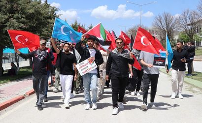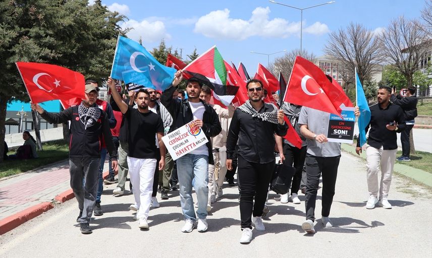Yozgat Bozok Üniversitesi öğrencileri, düzenledikleri yürüyüşle İsrail'in Gazze'ye yönelik saldırıları ile Doğu Türkistan'daki insan hakları ihlallerine tepki gösterdi.
