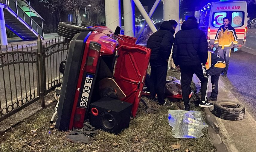 Yozgat'ta otomobilin üst geçidin ayağına çarpması sonucu 4 kişi yaralandı.