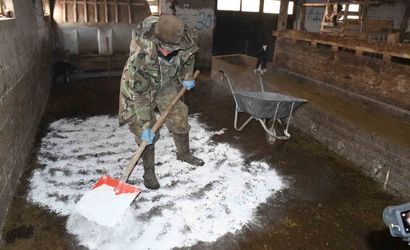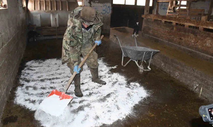 Yozgatlı yetiştirici kireç uygulamasıyla ahır hijyenini güçlendirdi