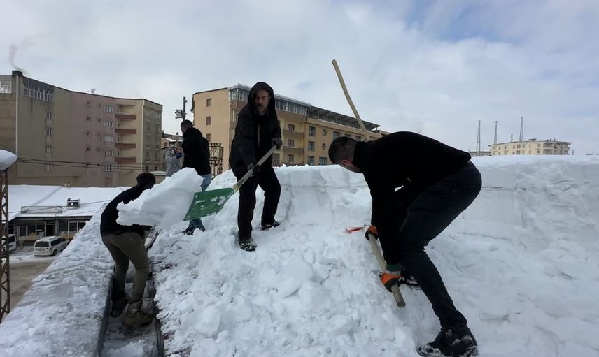 Yüksekova'da çatıda biriken kar kütleleri ekiplerce temizlendi