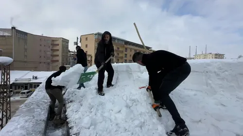 Yüksekova'da alışveriş merkezi çatısındaki kar, 20 kişilik ekip tarafından temizlendi