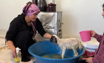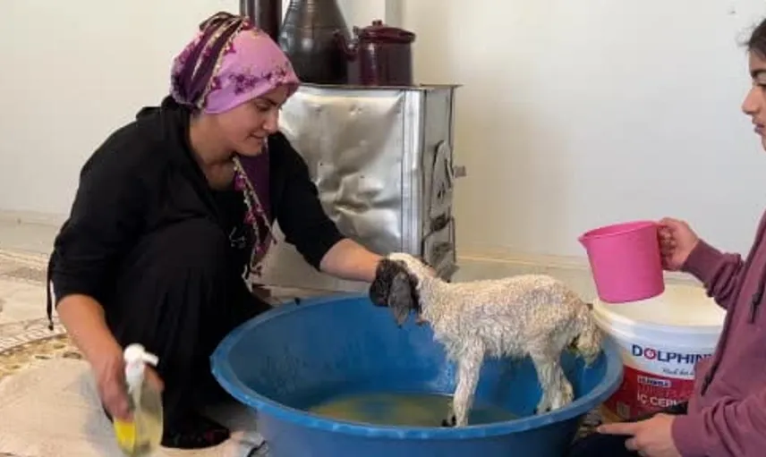 Kısıklı köyünde bebek şampuanı ve biberonla büyütülen kuzu, ailenin fedakâr bakımıyla hayata tutunuyor