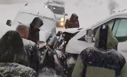 Sürücüleri öğrenilemeyen seyir halindeki iki kamyonet, yoldaki aşırı buzlanma nedeniyle kontrolden çıkarak kafa kafaya çarpıştı.