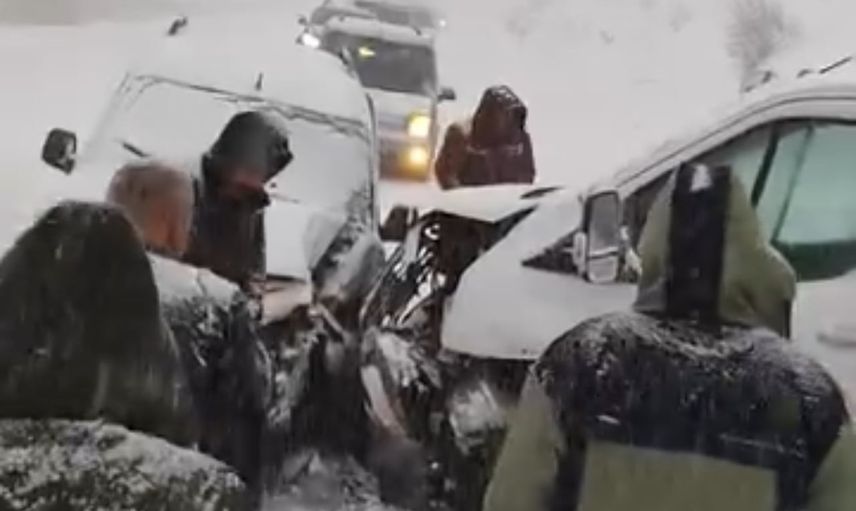 HAKKARİ-YÜKSEKOVA KARA YOLUNDA BUZLANMA NEDENİYLE KONTROLDEN ÇIKAN İKİ KAMYONETİN KAFA KAFAYA ÇARPIŞMASI SONUCU MADDİ HASARLI KAZA MEYDANA GELDİ.
