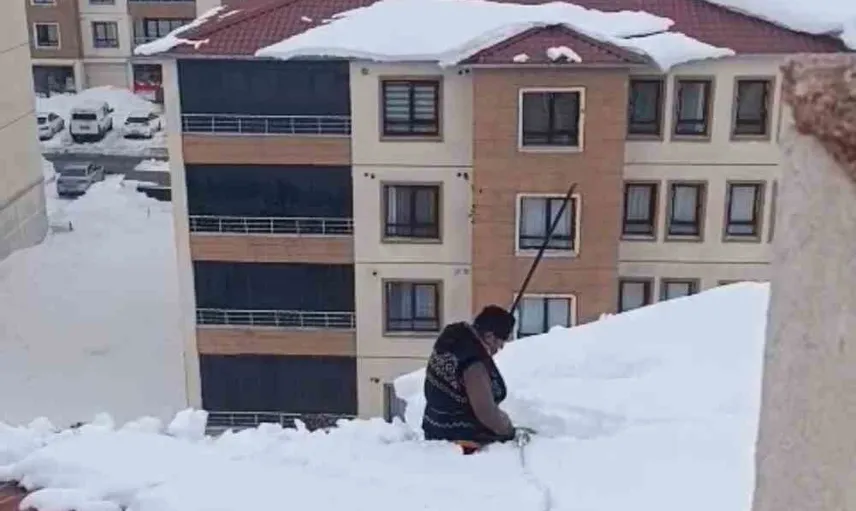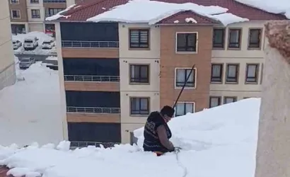Hakkari’nin Yüksekova ilçesinde, son 10 yılın en yoğun kar yağışı sonrası çatılarda biriken karları temizleyen bir vatandaş, ikindi vaktinde aşağı inmeyip çatıda ibadetini gerçekleştirdi. İlçe merkezinde kar kalınlığı 1 metreyi, yüksek kesimlerde ise 3 metreyi buldu.