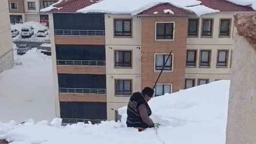 Yüksekova'da kar temizliği yaparken ikindi vakti montunu serip çatıda kar üzerinde namaz kılan Tahir Yıldız; kentte kar kalınlığı merkezde 1 m, yükseklerde 3 m.