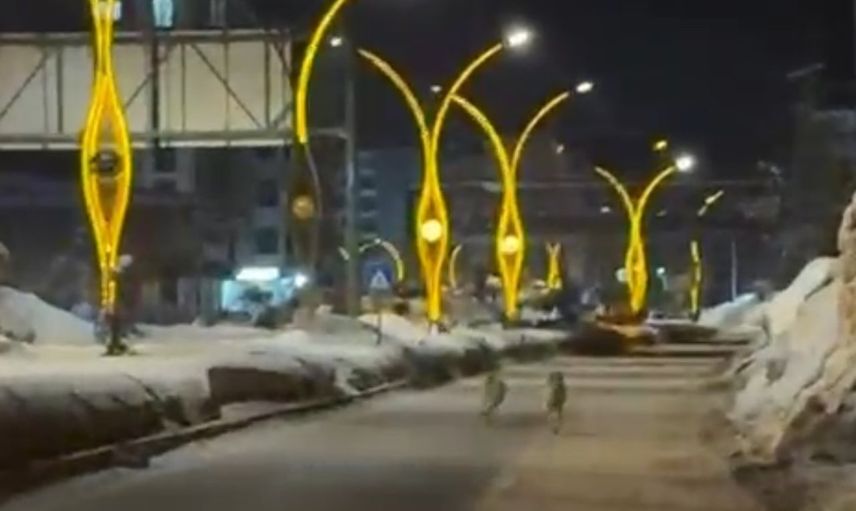 Hakkari'nin Yüksekova ilçesinde etkili olan olumsuz hava şartları nedeniyle aç kalan kurtlar, yiyecek arayışıyla ilçe merkezine indi. Olay İpekyolu Caddesi üzerinde gerçekleşti.