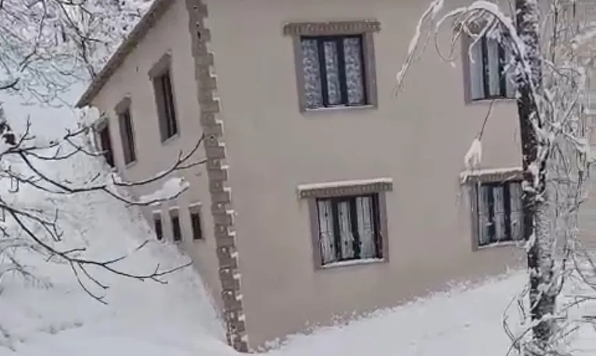 HAKKARİ’NİN YÜKSEKOVA İLÇESİNE BAĞLI YEŞİLTAŞ (ŞITAZIN) KÖYÜNDE DAĞDAN KOPAN KAR KÜTLESİ, YERLEŞİM ALANINA KADAR ULAŞTI. EVLERİN ÇOK YAKININDAN GEÇEN ÇIĞ, ŞANS ESERİ HERHANGİ BİR CAN VEYA MAL KAYBINA YOL AÇMADI.