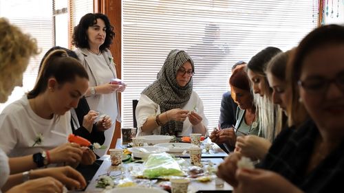 Prizren'de düzenlenen ipek koza sanatı kursunda 30 Kosovalı kadın geleneksel teknikleri öğreniyor.