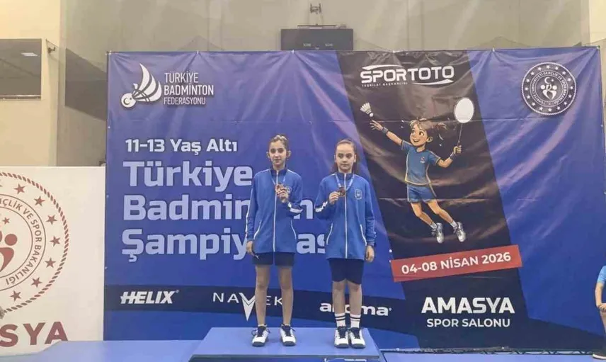 Yunusemre Belediyespor'un başarılı badmintoncuları Elif Ada Ceylan ve Irmak Denktaş, Amasya'da düzenlenen 11-13 Yaş Altı Türkiye Badminton Şampiyonası'nda çift kızlar kategorisinde Türkiye üçüncüsü olarak bronz madalya kazandı.