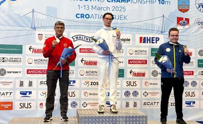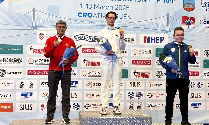 Hırvatistan'da düzenlenen Avrupa Havalı Silahlar Şampiyonası'nda milli atıcı Yusuf Dikeç (solda), erkekler 10 metre havalı tabanca solo kategorisinde gümüş madalya aldı.