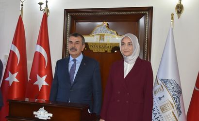 Milli Eğitim Bakanı Yusuf Tekin (sağ 3), Afyonkarahisar Valisi Kübra Güran Yiğitbaşı'nı ziyaret etti.