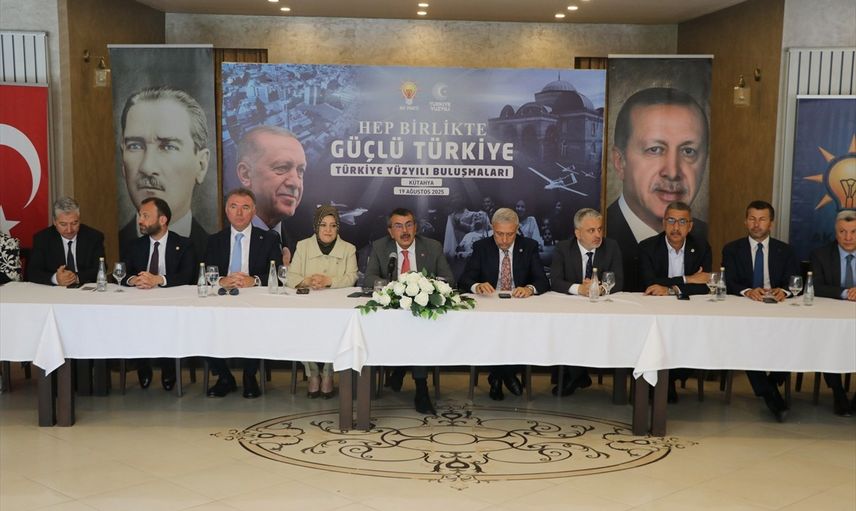Milli Eğitim Bakanı Yusuf Tekin (ortada), Kütahya'da bir restoranda düzenlenen "Türkiye Yüzyılı Buluşmaları" programına katılarak konuşma yaptı.