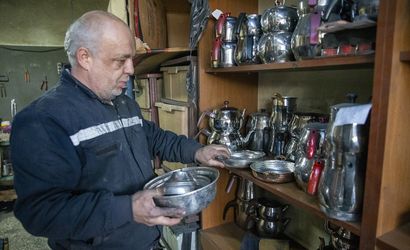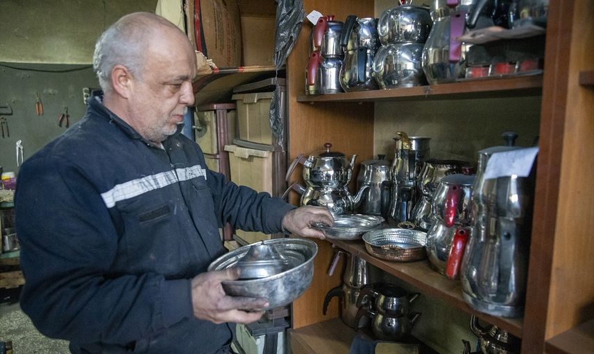 Bolu'da yaşayan Zafer Yıldız, kayınpederinden miras kalan dükkanda kırılan çaydanlıkları ve tencereleri tamir edip, eski bakır ev eşyalarını kalaylayarak ömürlerini uzatıyor.