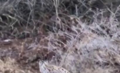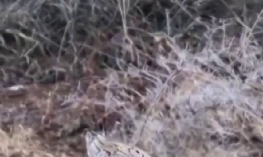 Sivas'ın Zara ilçesinde araç kullanırken nesli tükenme tehlikesi altında bulunan vaşak ile karşılaşan Erhan Güler, nadir görülen hayvanın görüntülerini cep telefonu ile kaydetti.