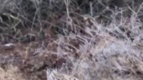 Sivas'ın Zara ilçesinde araç kullanırken nesli tükenme tehlikesi altındaki vaşağı gören Erhan Güler, anları cep telefonuyla kaydetti.