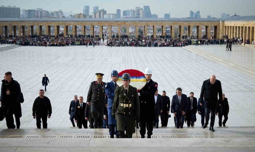 Zelenskiy, Anıtkabir’e Aslanlı Yoldan giriş yaparak beraberindeki heyetle birlikte Atatürk’ün mozolesine çelenk bıraktı. Ardından heyetle Misak-ı Milli Kulesine geçerek Anıtkabir Özel Defterini imzaladı.