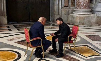 Ukrayna Devlet Başkanı Volodimir Zelenskiy (sağda), ABD Başkanı Donald Trump (solda) ile Vatikan'da görüşme gerçekleştirdi.