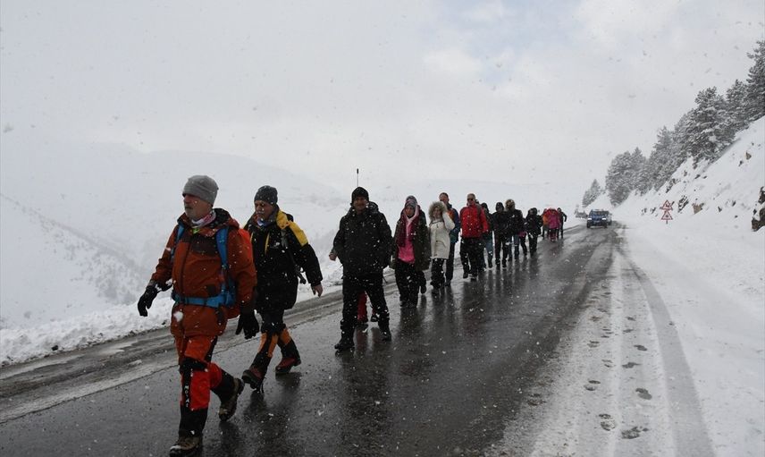 Katılımcılar, Zigana Dağı zirvesinden yürüyerek Çığ Şehitleri Anıtı