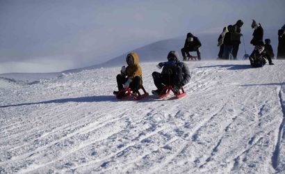 Kayak merkezi çevresinde kızakla kayan çocuklar ve horon gösterileri gibi etkinlikler, ziyaretçilere canlı görüntüler sundu.