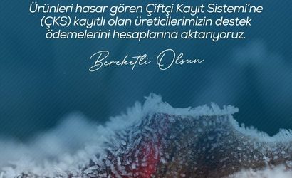 Zirai don zararı gören ÇKS'li üreticilere 798 milyon lira destek ödemesi
