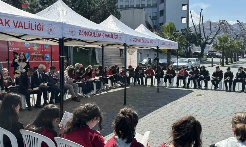 Zonguldak sahil bandında, yoğun katılımla 'Kitap Okuyoruz' etkinliği gerçekleştirildi. Etkinlik, 81 ilde eş zamanlı olarak İl Kültür ve Turizm Müdürlüğü ile İl Halk Kütüphanesi iş birliği çerçevesinde, Kütüphane Haftası etkinlikleri kapsamında düzenlendi.