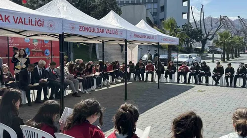 Zonguldak sahil bandında, İl Kültür ve Turizm Müdürlüğü ve İl Halk Kütüphanesi iş birliğiyle Kütüphane Haftası kapsamında 'Kitap Okuyoruz' etkinliği düzenlendi; vatandaşlar kitap okudu.