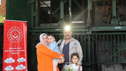 Zonguldak'ta çocuklar, Babalar Günü'nde maden işçilerine sürpriz yaparak duygusal anlar yaşattı.