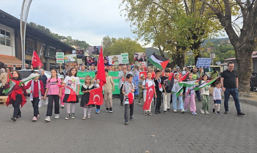 Zonguldak'ta sivil toplum kuruluşlarınca düzenlenen yürüyüş için katılımcılar İstasyon Caddesi'nde bir araya geldi. Grup, Türk ve Filistin bayrakları ve pankartlarla kent merkezindeki Madenci Anıtı'na sloganlarla yürüdü.