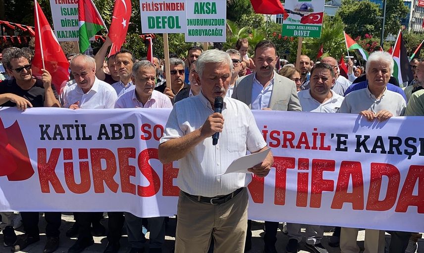 Zonguldak'ta, Hamas Siyasi Büro Başkanı İsmail Heniyye'nin İran'da suikasta uğraması ve İsrail'in Gazze'ye yönelik saldırıları protesto edildi.