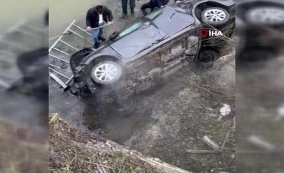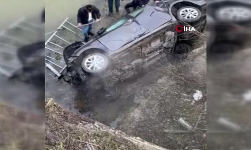 Kontrolü kaybeden otomobil bariyerlere çarptı ve yaklaşık 20 metre yükseklikteki köprüden dereye düştü.